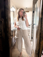 - Model is 5'6" and wearing a size small