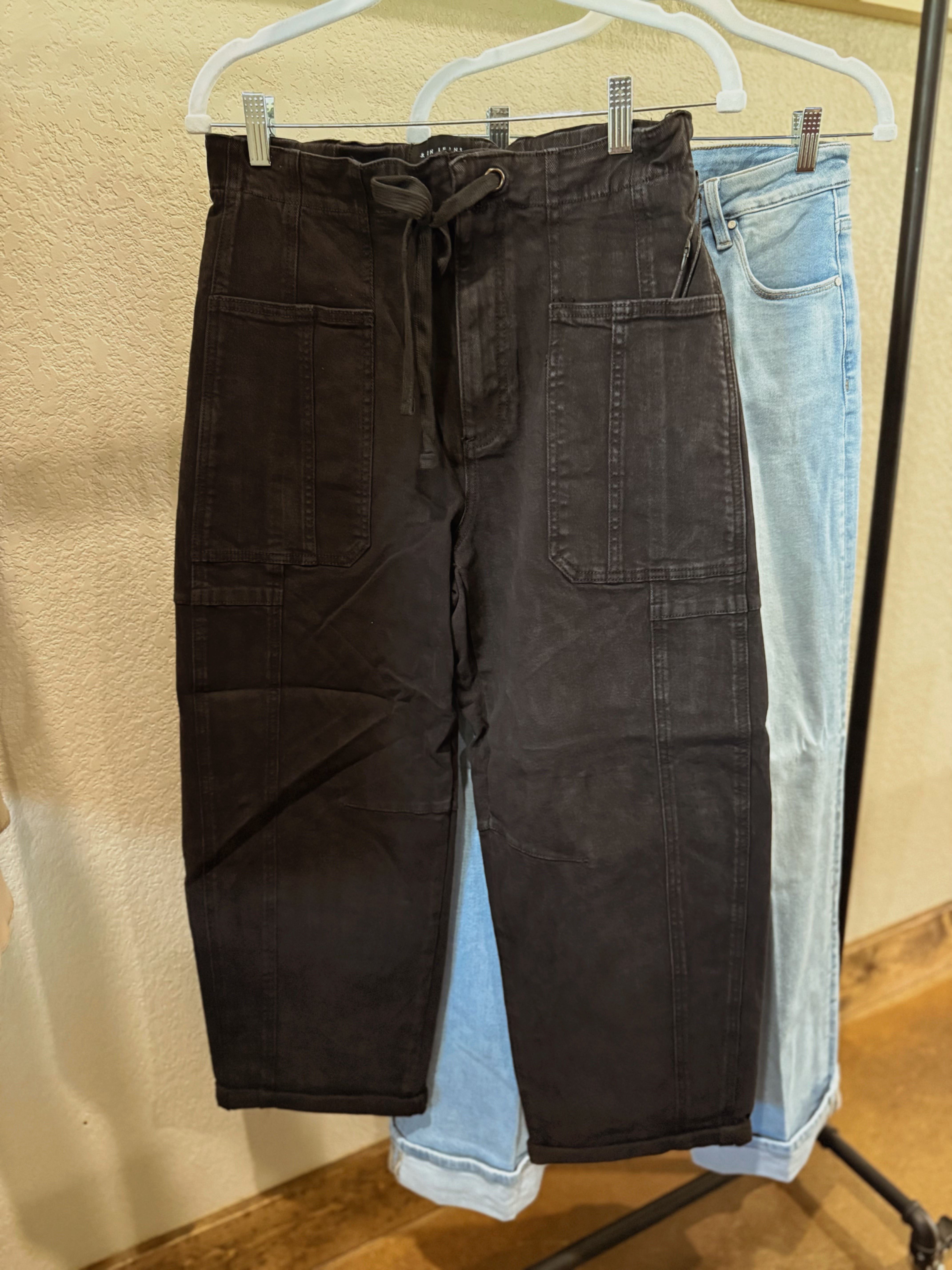 • These Urban Cargo Pants feature a high-rise 12" rise and a versatile wide barrel silhouette. Designed with practical cargo pockets, they combine functionality with modern style. The inseam measures 25" after cuffing and 27.5" before cuffing in size 3/26, allowing for customizable length and a tailored fit. Ideal for those seeking a blend of comfort, utility, and contemporary fashion.