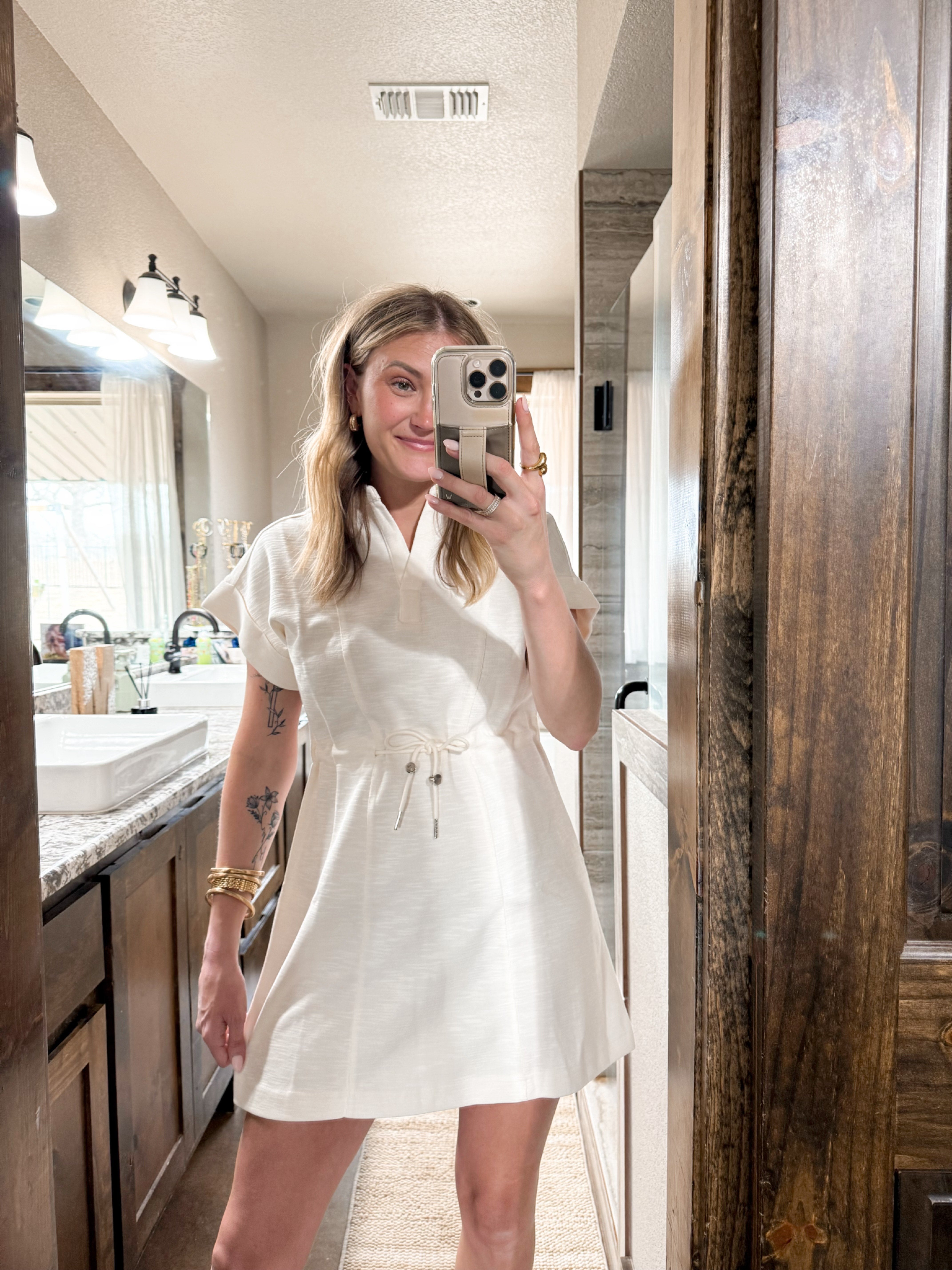 • The Collared Knit Dress features a playful collar and short sleeve design, adding a touch of sophistication to your look. With a drawstring waist for a flattering fit, this versatile dress can be dressed up or down for any occasion. A must-have for every wardrobe.