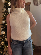 - Crafted with a blend of knit cotton and polyester, the Salma Turtle Neck Top offers both comfort and style. Its sleeveless design and mock neck make it versatile for any occasion, while the soft, breathable fabric ensures a cozy fit. Upgrade your wardrobe with this must-have top.