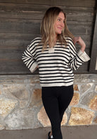 Stripe Split Neck Sweater-Cream