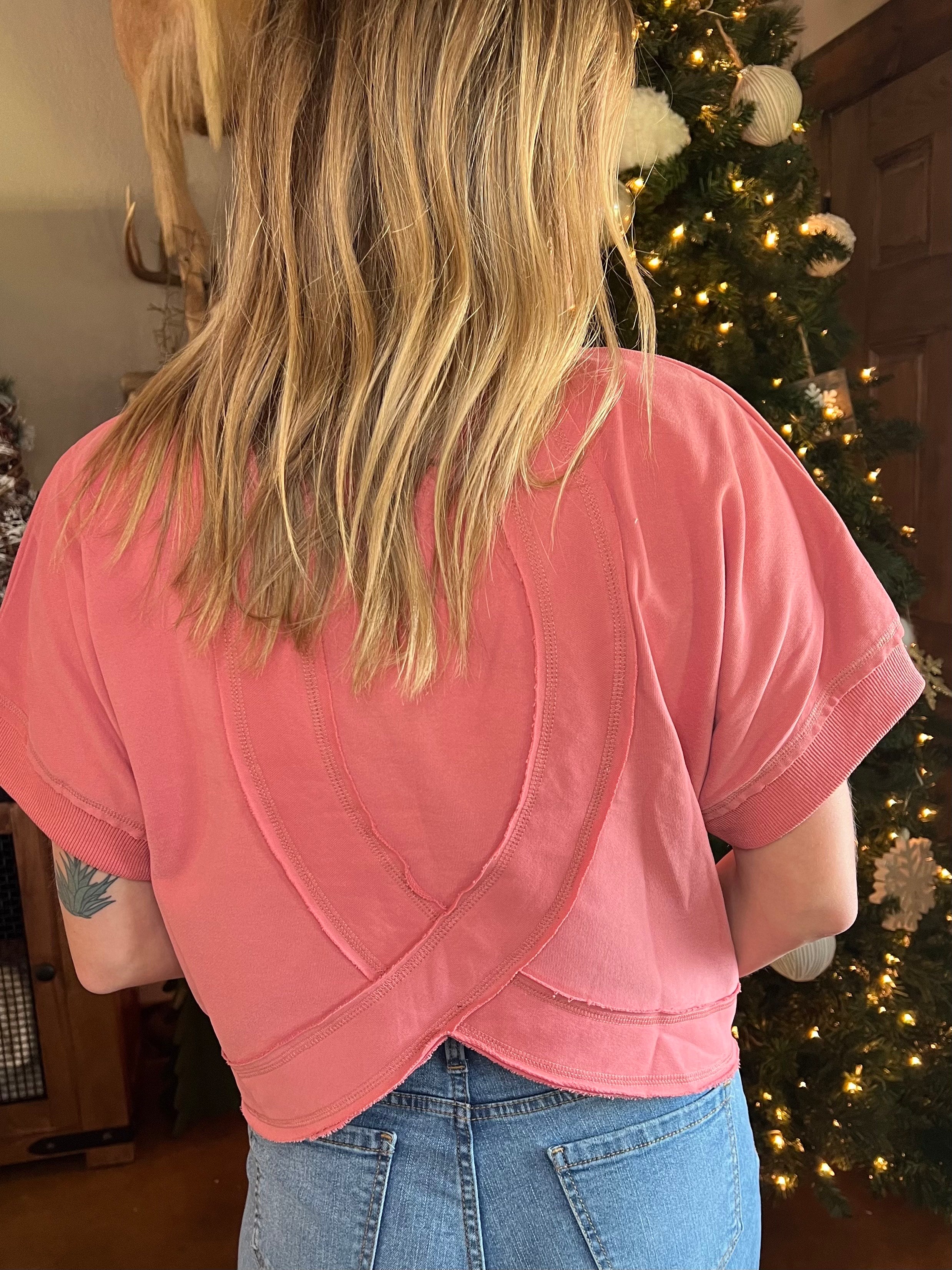 - Expertly designed for comfort and style, this short sleeve crewneck features a unique overlapping oval detail on the back. Elevate your wardrobe with a contemporary flair, while maintaining a sophisticated and comfortable look.